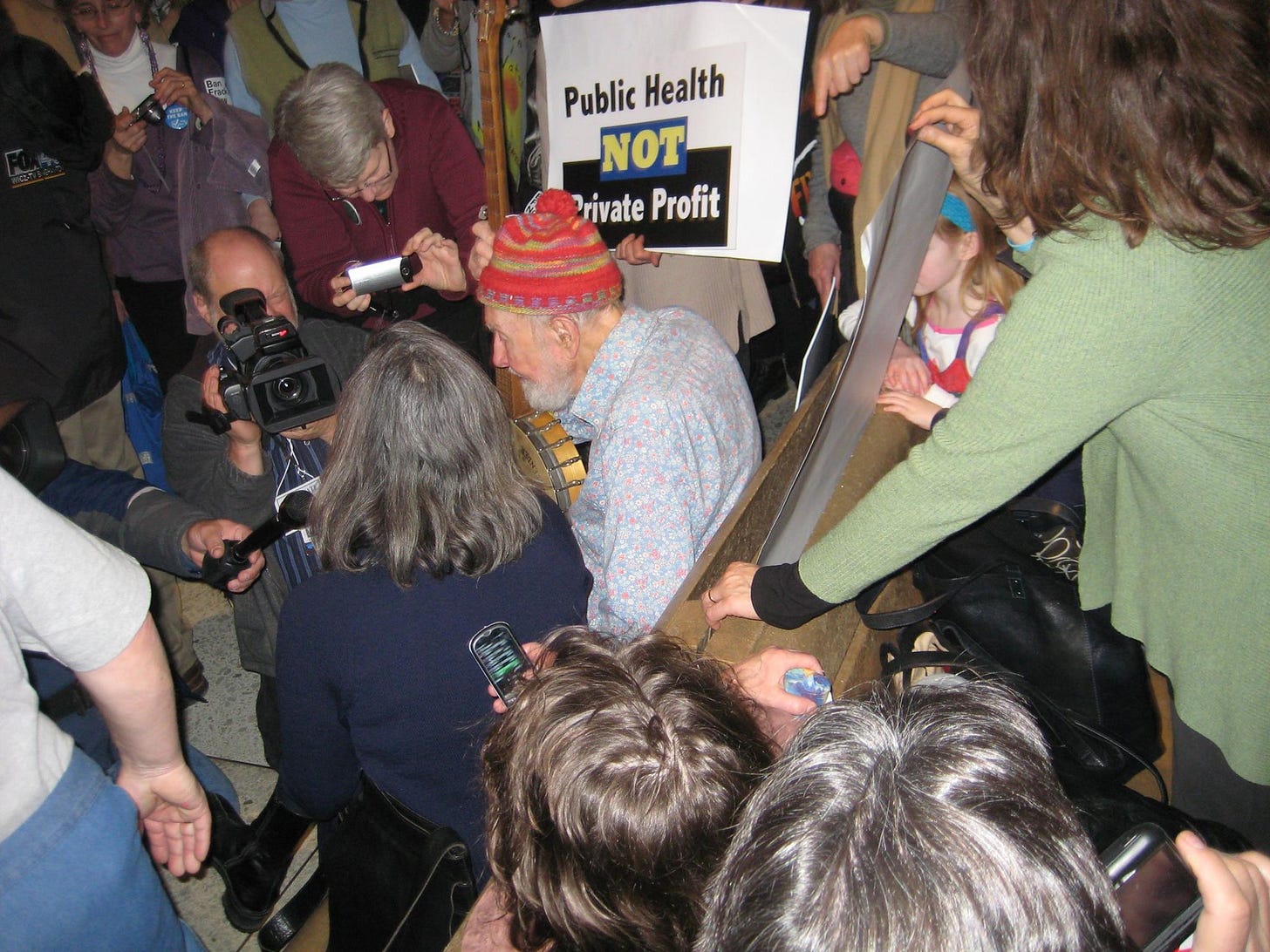 The last time I saw Pete Seeger was at a protest to Ban Fracking in New York State, in 2013. He showed up—he always showed up. It was a winter’s day, bitter cold. Banjo in hand, he talked to the press, and marched with the protesters. And then he strummed the banjo and led us in a few verses of This Land. Ninety-three years young.