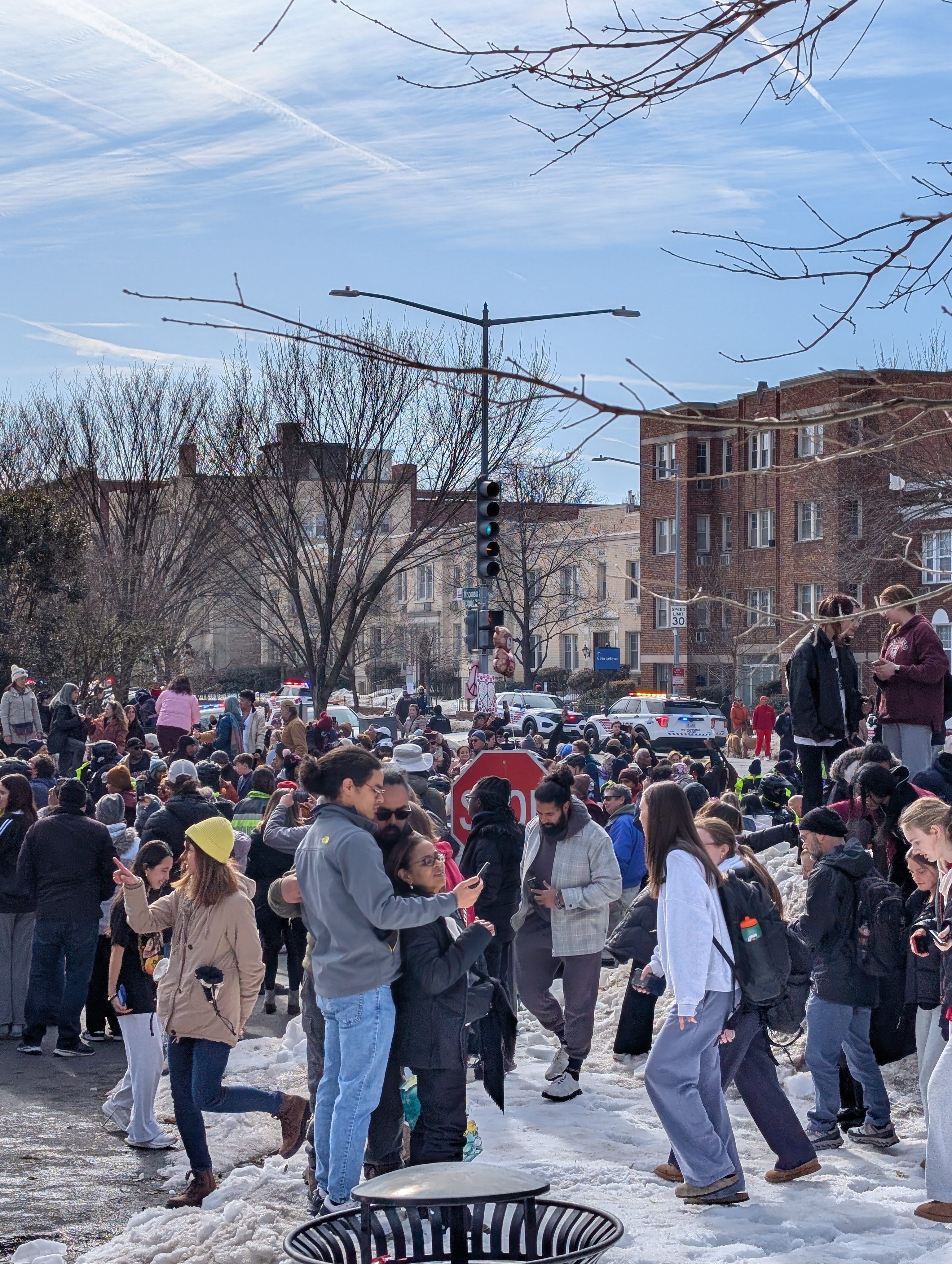 I joined the crowd, and eventually clambered up on a snow mound (DC is still absolutely buried in frozen snow) to get a good view.