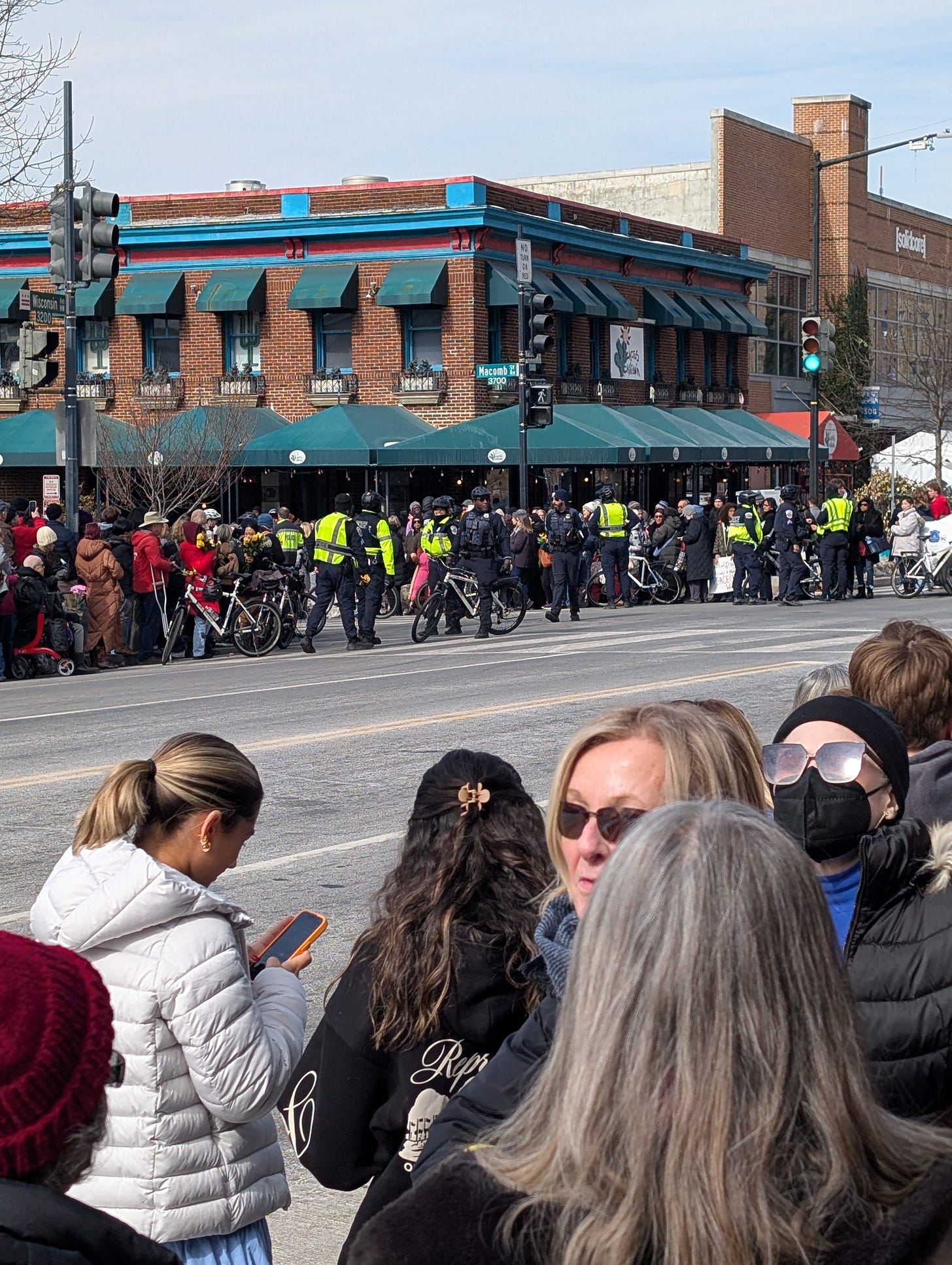 And what I saw was police. DC cops everywhere, keeping the crowds off the roadway. And they were so nice about it. Not only courteous, just plain nice. “Hey, do me a favor and move out of the crosswalk, please, ma’am,” they’d say. Or “Hey, folks, we wanna keep you safe, step back a bit, thanks!”